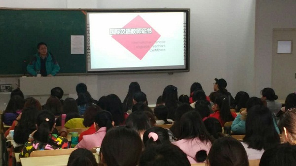 2016年3月3日,必赢官网刘伟博士在行知楼209教室召开《国际汉语教师证书》培训和考试宣讲会。