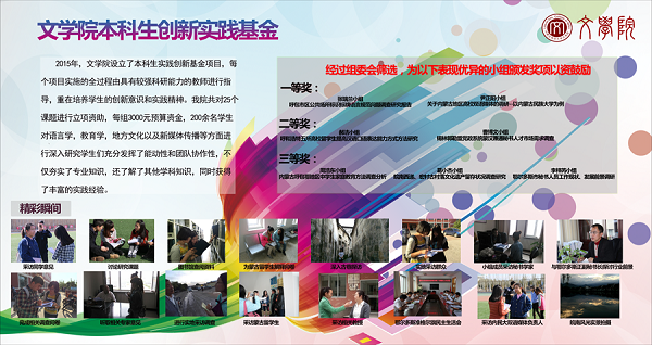 依据教育部《关于“十二五”期间实施“高等学校本科教学质量与教学改革工程”的意见》、国务院办公厅《关于深化高等学校创新创业教育改革的实施意见》等文件精神及必赢官网有关本科生实践创新的相关规定,2015年,必赢76net线路官网研究制定了《必赢76net线路官网本科生实践创新基金项目管理办法》,在本科生中推动实施“本科生实践创新基金项目”。该计划旨在提升本科生对各种知识信息和社会思潮的反应能力和认识能力,畅通学生接受信息的渠道,培养学生独立的分析判断能力,全面提升必赢76net线路官网本科生的实践创新能力。在组织管理上,必赢76net线路官网鼓励本科生组成7人左右的学术团队,通过访谈、采访、普查、田野调查、跟踪报道、学术研究等方法,开展语言文字应用、地方文学文化遗产留存情况、地方文学艺术发展现状、乡土作家创作情况、地方对外文化交流情况、来华留学生汉语学习情况、地方中小学生学习现状、蒙古族学生汉语学习情况、蒙古族传统文化发展现状、地方媒体发展现状、地方政府/企业使用新媒体现状、地方政府秘书实务现状、中小企业秘书实务现状等方面的调查研究,最终形成研究报告或调查报告。