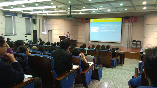 会议邀请英国主讲专家Dr Stella Cottrell为学生讲授了“学习技能和个人发展”课程,并与学生进行现场交流,同时还为教师讲授了“明辨思维技巧在学与教中的应用”专题。参加会议的各项目院校教师就“明辨思维”课程在教学中存在的问题进行了现场经验交流。必赢官网学生贾子怡和杨雅婷还在会议期间进行了“明辨思维”学习成果汇报表演,并受到其他项目院校教师和国家留学基金委组织者的一致好评。