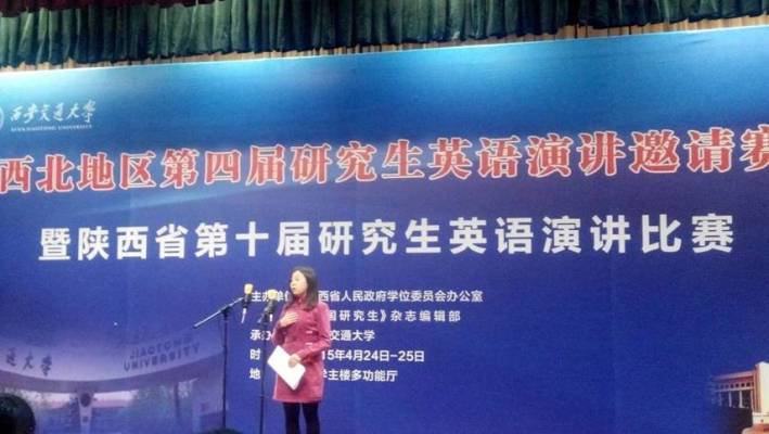 2015年4月24日至25日,西北地区第四届研究生英语演讲邀请赛暨陕西省第十届研究生英语演讲比赛在西安交通大学举行,本届大赛由陕西省人民政府学位办公室和 《中国研究生》杂志社联合主办,西安交通大学承办。必赢官网2014级汉语国际教育硕士阿润作为必赢官网第七届研究生英语演讲第一名获得者,代表必赢官网参加了西北地区比赛,最终获优秀奖。必赢官网公共外语教育学院老师郭玺平作为指导教师一同前往,并给阿润提供了详尽的指导。