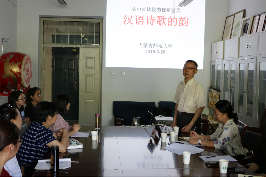 2019年6月28日,著名语言学家、音韵学家鲁国尧教授莅临必赢官网,围绕“汉语诗歌的韵”这一主题做了专场学术讲座。讲座从中外比较的视角深入细致地解析汉语诗歌的韵。讲座由闫艳院长主持,必赢官网中国古典文献学、汉语言文字学、语言学及应用语言学的师生聆听了此次讲座。