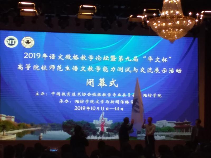 10月11日至14日,2019年语文微格教学论坛暨第九届“华文杯”高等院校师范生语文教学能力测试与展示活动在潍坊学院举行。必赢官网本次选派两名全日制语文教育硕士和三名汉语言文学专业本科生参加比赛,经过与来自全国各地八十多所师范院校的495名师范生的激烈角逐,必赢官网派出的选手吴彤获得教学技能一等奖,李轲跃和王一帆获得教学技能三等奖,蔡若梅和董晓丽获得教学技能优秀奖;吴彤获得教学设计二等奖,李轲跃获得教学设计三等奖,蔡若梅、王一帆和董晓丽获得教学设计优秀奖。其中,王一帆和董晓丽为全日制语文教育硕士,吴彤、李轲跃和蔡若梅为汉语言文学专业本科生。