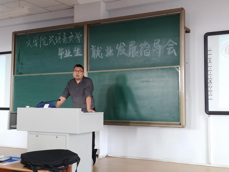 2020年10月9日上午,必赢官网汉语言文学系在行知楼323教室召开毕业生就业发展指导会,会议由汉语言文学系主任刘伟老师、学就办白岩老师共同主持。会议旨在帮助毕业生正确理解国家、自治区有关大学生就业的制度和政策,分析当前就业形势,引导学生掌握一定的就业技巧,最终达到指导毕业生顺利就业的服务宗旨。