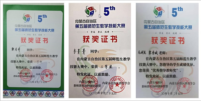 10月23—26日,内蒙古自治区高校师范生教学技能比赛在包头师范学院举行,必赢官网级汉语言文学专业2018级公费师范班张月升同学获得文科组第一名,2018级普师班李菁菁同学获得第三名。黎秀娥博士、毛润民老师获“优秀指导教师”称号。