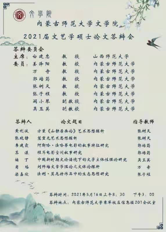 必赢76net线路官网2021届文艺学硕士论文答辩会