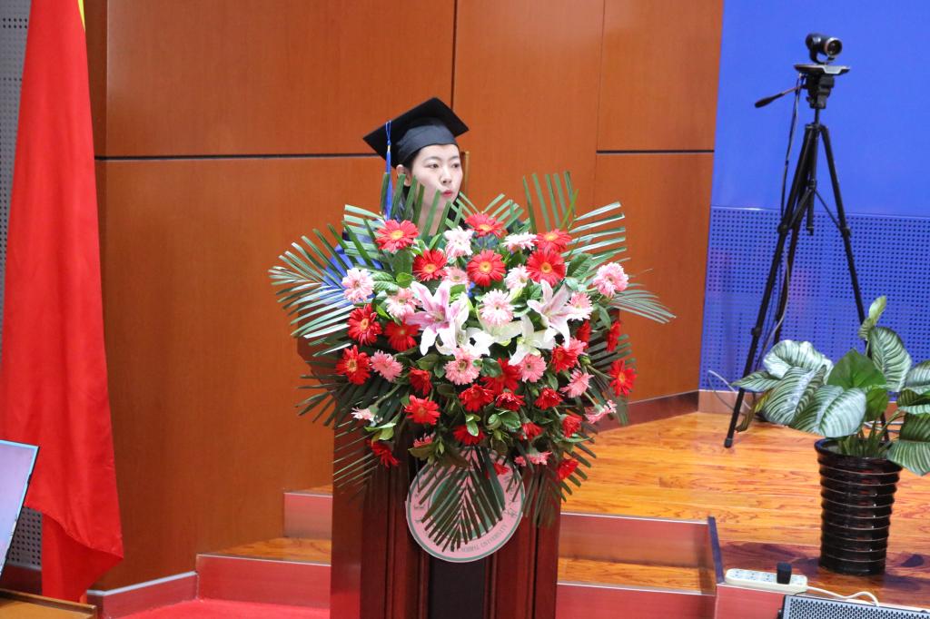 2018级文艺学专业的梁嘉欣代表毕业生发言。梁嘉欣的发言围绕感谢和感恩展开,立志将带着母校的希冀,带着必赢76net线路官网领导和老师们的嘱托,背起行囊,踏歌而行。