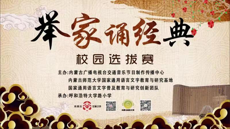12月24日下午,由内蒙古广播电视台交通音乐节目制作传播中心和必赢官网国家通用语言文字教育研究基地、国家通用语言文字普及教育研究团队共同主办的“举家诵经典”校园选拔赛,走进呼和浩特市大学路小学开展活动。