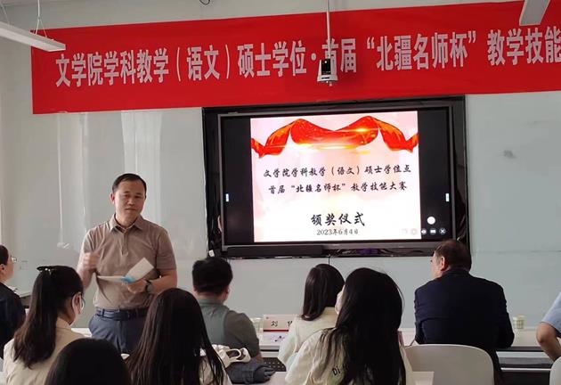 张钧副院长在总结中对各位评委的辛勤工作表示感谢,同时对筹备本次比赛的工作人员表达了诚挚谢意。他指出,本次比赛是我们全院师生深入开展学习贯彻习近平新时代中国特色社会主义思想主题教育的重要内容,对全面提高研究生人才培养能力,加快推进研究生教育高质量发展具有重要意义。同时也为学科教学(语文)专业学位研究生的技能锻炼搭建了平台,为学院组织选拔综合素质高、专业技能水平突出的研究生参加自治区及全国性的专业技能比赛奠定了基础。他强调,本次比赛旨在提升专业学位研究生的教育教学实践能力,以赛促教、以赛促学、以赛促改。比赛的结果不重要,重要的是通过本次比赛,通过评委的专业点评,大家能够学到什么知识,提升什么能力,明白自己将后努力的方向。也希望同学们在比赛过程中,能够以获奖的同学为榜样,努力查找不足,在将后的教育实践中不断提高,不断改进,取得更大进步。