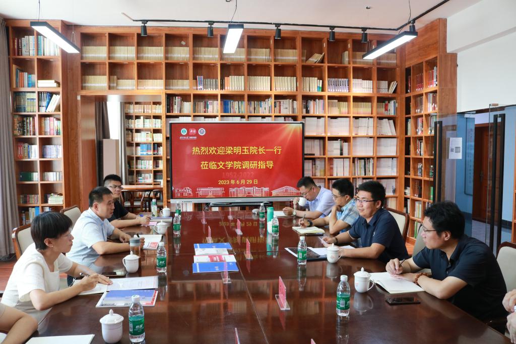 2023年6月29日下午,内江师范学院必赢76net线路官网院长梁明玉、院长助理王昕、语言学教研室主任陈康哲、青年教师董喆一行来必赢76net线路官网调研交流。
