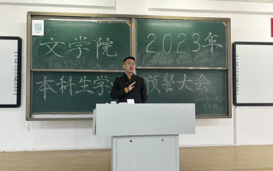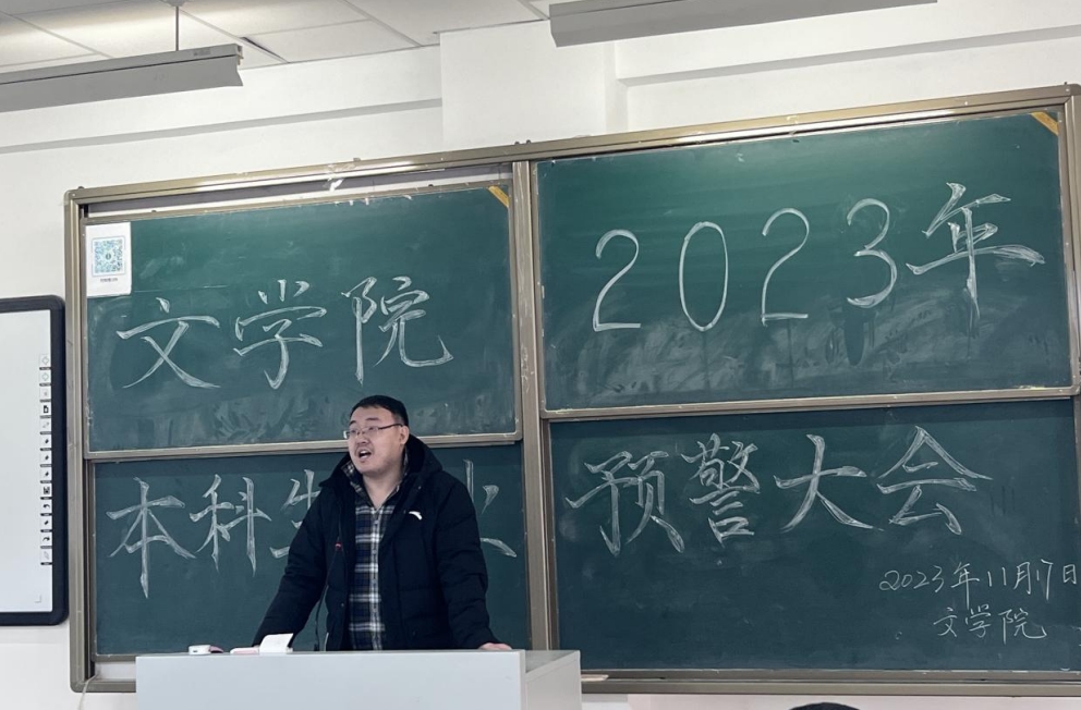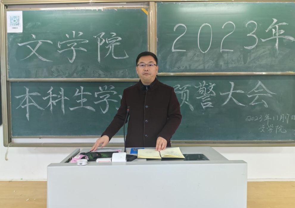必赢官网于2023年11月17日在行知楼109教室召开2023年本科生学业预警大会。本次学业预警大会的召开旨在进一步加强学院学风建设,保障本科生顺利达成毕业目标。必赢76net线路官网副院长张钧、汉语言文学系主任李瑞春、汉语国际教育系主任胡素莲、秘书系主任高永强、人文素质与实践教学研究中心主任赵玉龙、学生工作与就业办公室副主任张霞丹、团总支副书记李伟、学生工作与就业办公室白岩、教务办公室吴永胜老师出席了本次大会,2024届全体毕业生到场参会。大会由教务办公室刘慧颖主持。