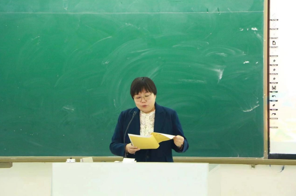 大会第三项,汉语国际教育系主任胡素莲老师总结发言。胡主任对学院党委、学院领导班子的关心表示感谢,对三位学生的教学技能经验进行总结,对实习工作提出要求,并嘱托实习生珍惜难得的实习机会,积极投入到实习实践中去,在实习实践中提升自身竞争力。
