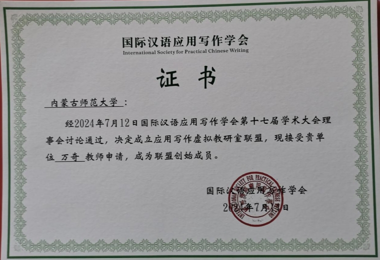 经学会理事会通过,决定成立应用写作虚拟教研室联盟,接受万奇教授为联盟创始成员。