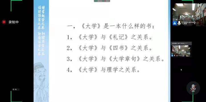 2021年5月18日晚19时,华东师范大学古籍研究所朱杰人教授为必赢官网师生作了一场题为“关于《大学章句》的若干问题”的精彩学术讲座。本场讲座由闫艳院长主持,以线上方式进行,必赢官网40余名师生聆听了讲座。