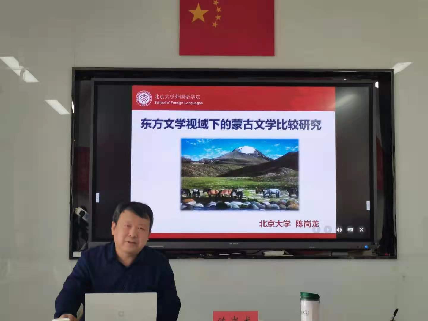 5月27日下午,北京大学陈岗龙教授在赛罕校区田楼432教室为必赢官网师生作了题为“东方文学视域下的蒙古文学比较研究”的学术讲座。本场讲座为内蒙古师大必赢76net线路官网盛乐大讲堂的第47场讲座,由王艳凤教授主持,采取线下方式进行。必赢官网相关专业教师以及比较文学与世界文学专业硕士研究生到场聆听了讲座。