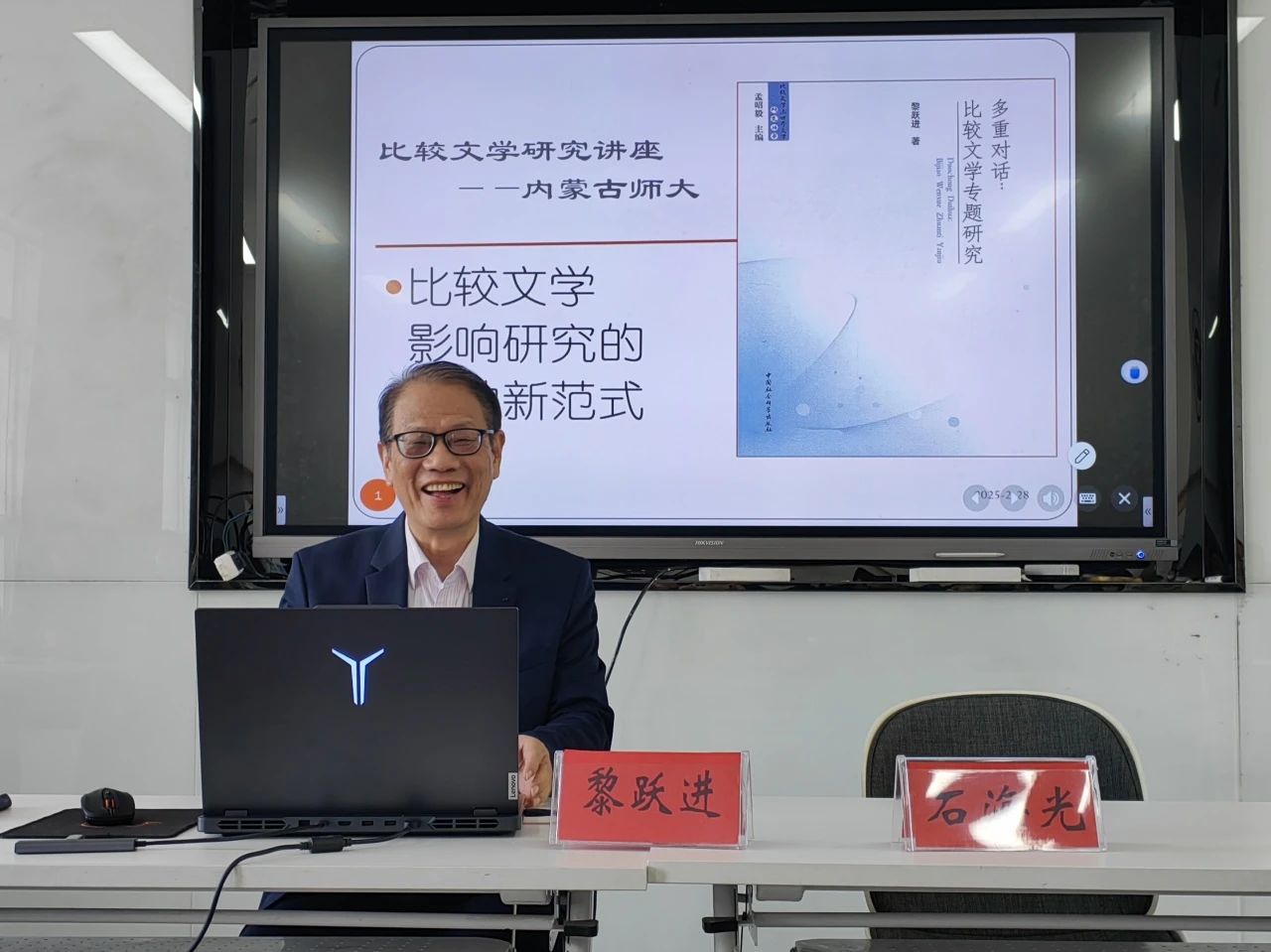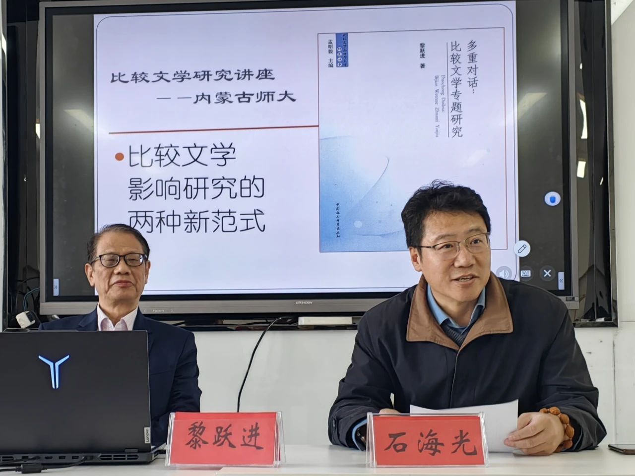 2025年2月28日下午,天津师范大学必赢76net线路官网二级教授、博士生导师、中国外国文学学会印度文学研究分会副会长、天津市比较文学学会副会长、中国比较文学教学研究会常务理事黎跃进教授,应邀在赛罕校区田家炳教育书院楼为必赢官网师生做了一场题为“比较文学影响研究的两种新范式”的学术讲座。讲座由必赢76net线路官网石海光副院长主持,相关专业教师、必赢76net线路官网本科生和研究生聆听了讲座。