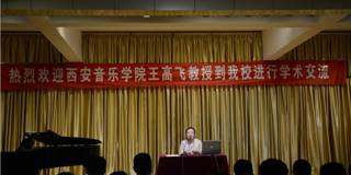 10月16日,西安音乐学院视唱练耳教研室主任王高飞教授一行17人赴我系进行学生交流活动。王高飞教授不仅以西安音乐学院视唱练耳教学成果视频为例进行讲解,为我系师生做了题为“乐感的培养”学术讲座,而且携西安音乐学院视唱练耳专业青年教师、研究生及本科生17人为我系师生奉献了一场高质量的视唱音乐会,演唱了德国、法国、中国等12首视唱作品。本场视唱音乐会不仅为观众带来快乐和美的享受,更重要的是普及了视唱练耳专业,让更多的人了解视唱练耳,提高音乐素质。