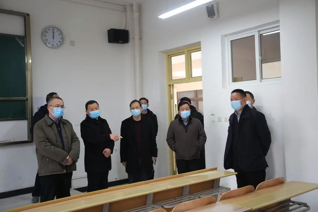 12月24日下午,学校党委书记丁巨涛,校长钟生海,党委副书记胡波、杨行玉,党委副书记、纪委书记、监察专员安永强,副校长张东红检查开元官网2022年全国硕士研究生招生考试准备工作。学校领导现场检查开元官网江南、江北校区考点门禁管理、防疫检查通道、考生及工作人员出入口设置、视频监控、保密室值班、施考程序、消杀防疫等工作开展情况,仔细询问考场视频监控设备运行状况,详细了解为保障考试安全采取的相关措施,强调务必确保考试组织和疫情防控“双安全”。