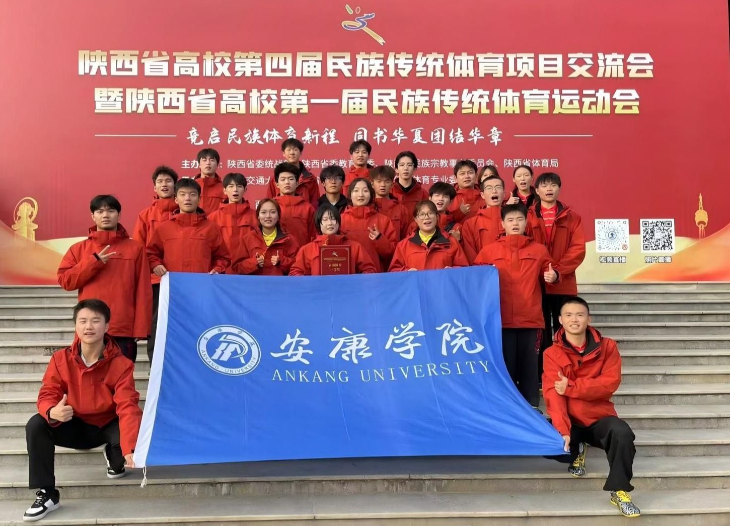 在第十五届全运会群众太极展演中,作为陕西省唯一入选的高校代表队,他们以精湛的技艺、饱满的精神状态,展现了陕南武韵的独特风采,让更多人感受到中华武术的当代魅力。赛场之外,队员们还主动走进中小学、社区开展武术公益教学,通过趣味课堂、套路展示等形式,向青少年普及武术知识、传播武术文化,让“自强不息、厚德载物”的武学精神影响更多人。